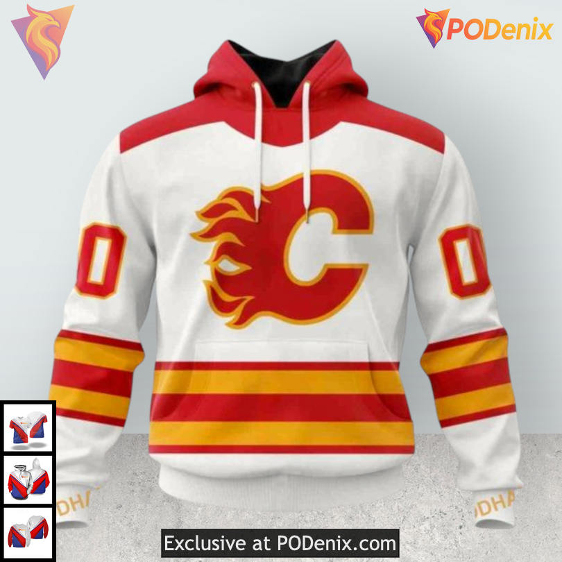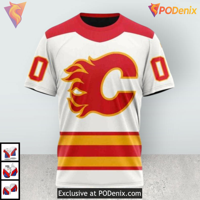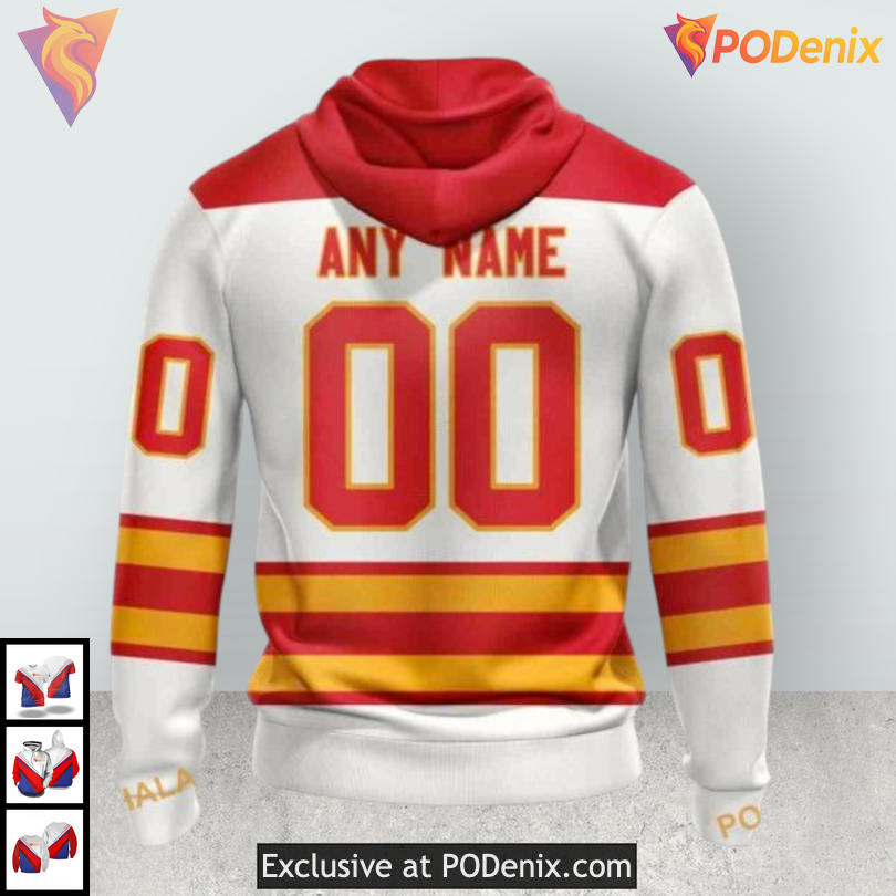 Product Information for 2025 Away Kits Concept Calgary Flames All Over Print Hoodie Team Sweatshirt: