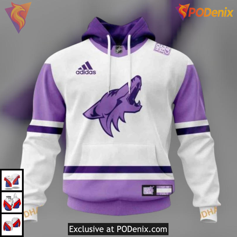 Product Information for 2025 Hockey Fight Cancer Tribute Arizona Coyotes Hoodie Personalized Apparel: