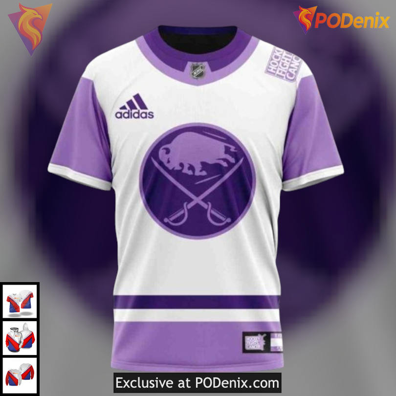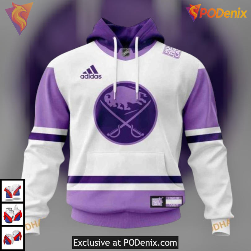 Product Information for 2025 Hockey Fights Cancer Tribute NHL Buffalo Sabres 3D Hoodie Personalized: