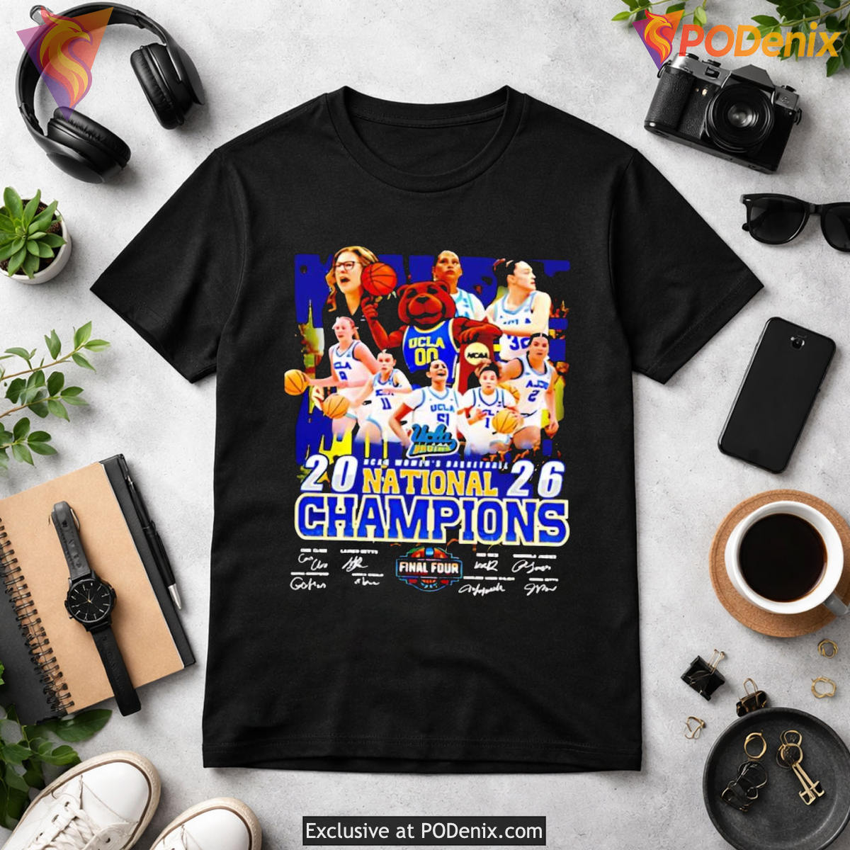 Product Information for 2026 UCLA Bruins Womens Basketball Champions Signatures T-Shirt: