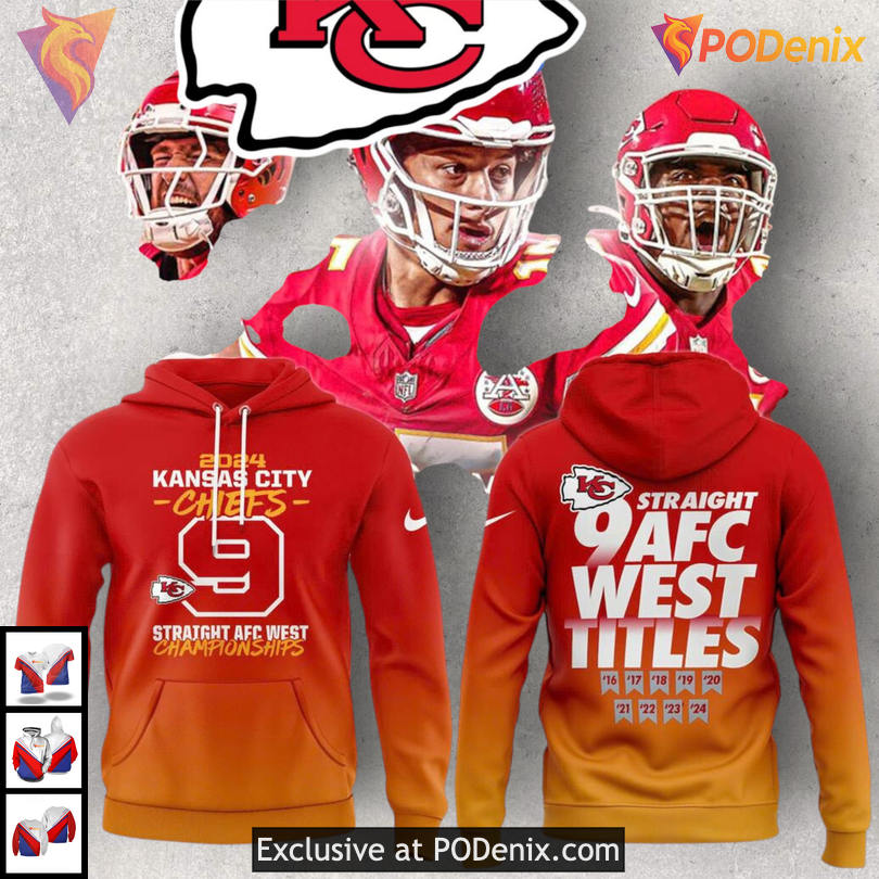 Product Information for AFC West Champs 9th Title Kansas City Chiefs Kids Hoodie, Fan Celebration Gear: