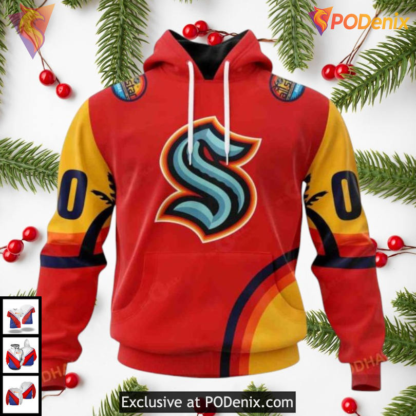 Custom Name Seattle Kraken Hoodie: All Star Sunset Series Seattle Kraken Personalized Name Hoodie Design