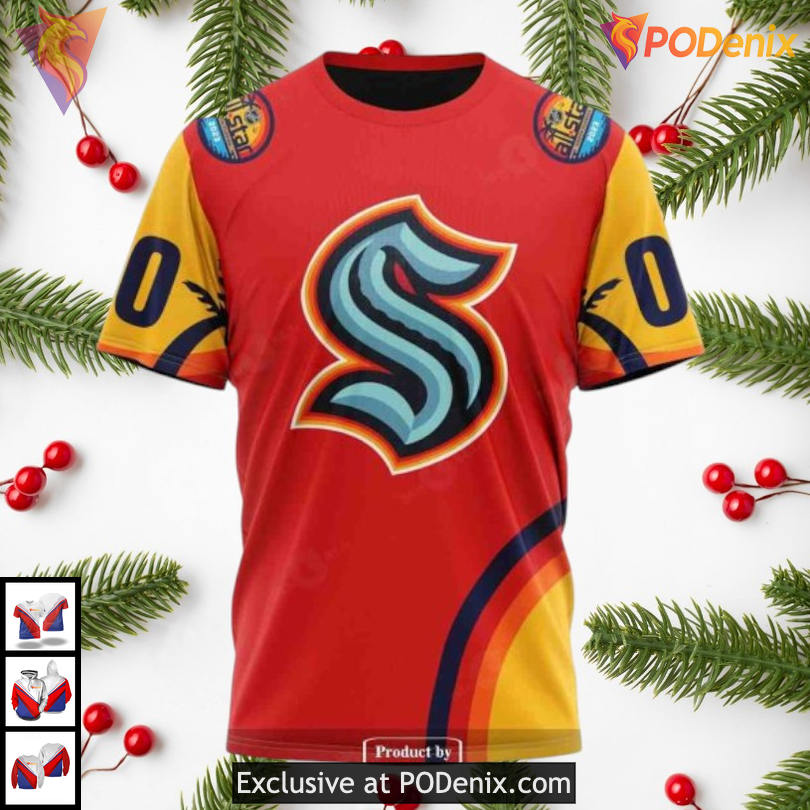 Experience the vibrant energy of the Seattle Kraken fandom with our Custom Name Seattle Kraken Hoodie. This design features a stunning all-star sunset series motif, capturing the essence of team spirit with bold colors and graphic details that resonate with dedicated fans.