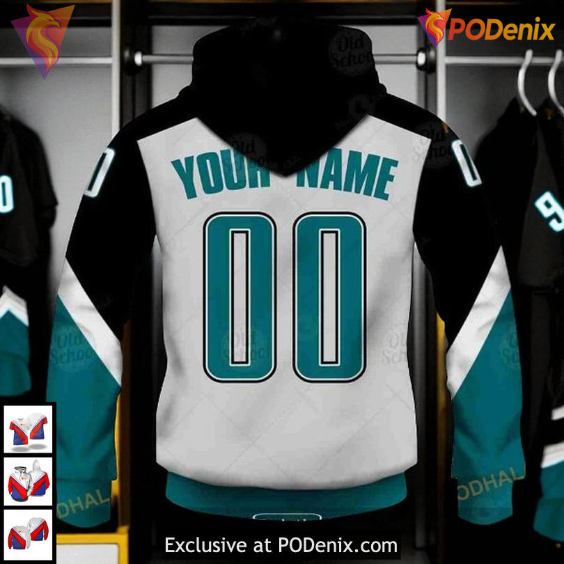 Product Information for Alternate Reverse Retro Custom Name Number San Jose Sharks 3D Hoodie NHL: