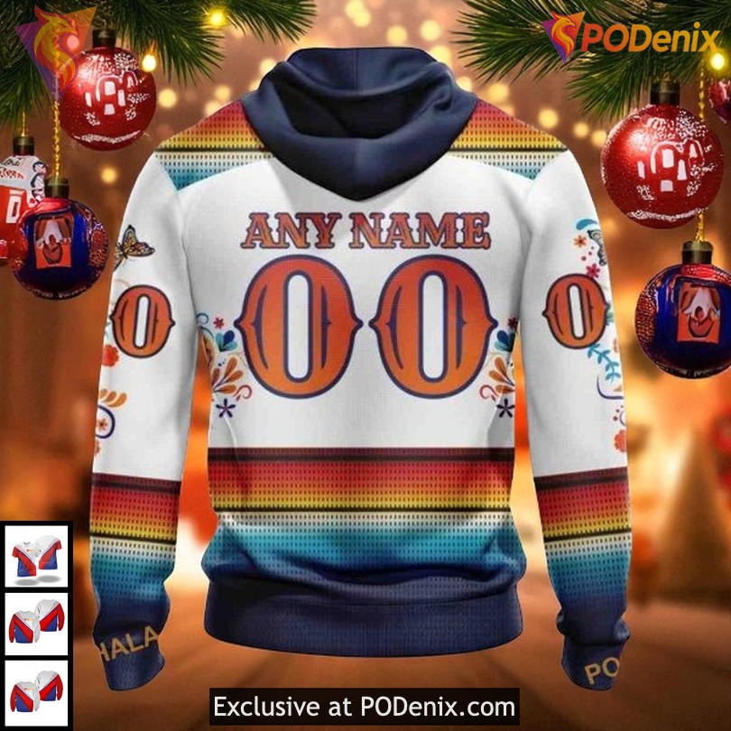 Anaheim Ducks 3D Hoodie brings Dia De Los Muertos vibes to life with a striking skull design, bold team spirit, and the phrase Any Name 00 shining through. Perfect for fans who love cultural art and hockey passion combined.