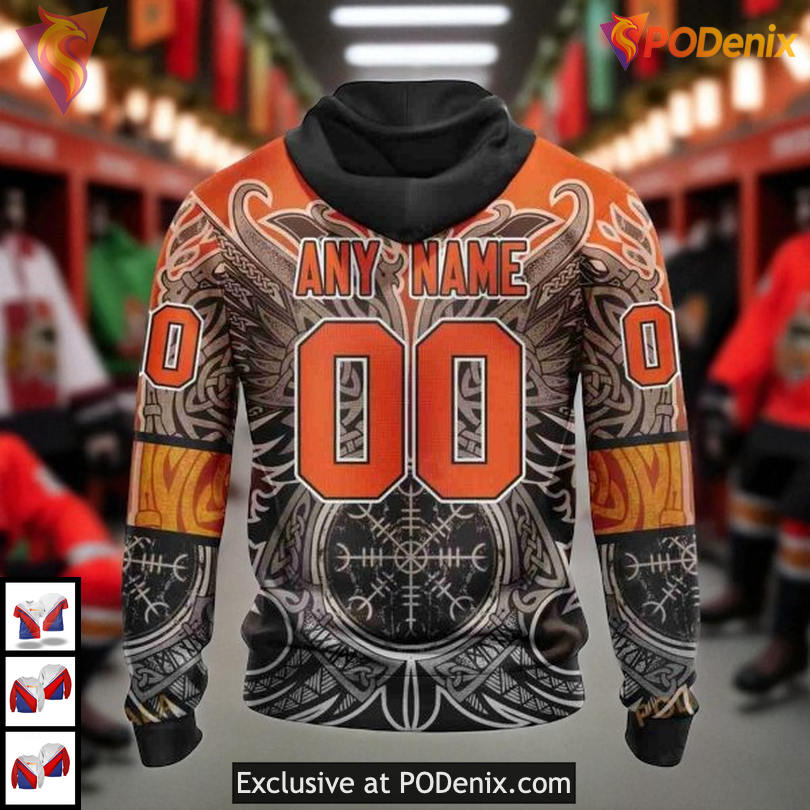 Anaheim Ducks All Over Print Hoodie For Fans brings a bold Viking inspired design to life with striking runes and Norse symbols that echo strength and unity. The artwork says power in every detail, making it a standout for dedicated supporters.