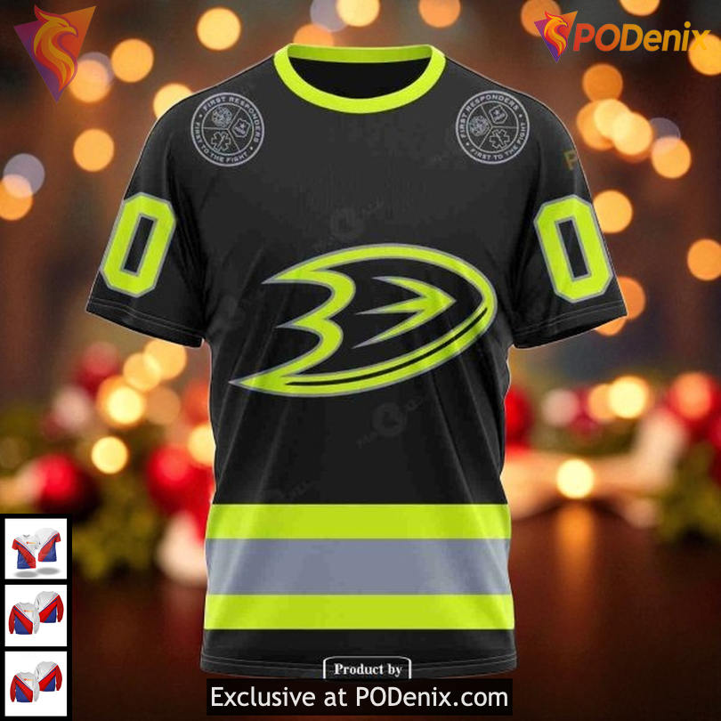 Product Information for Anaheim Ducks Custom Name 3D Hoodie, Firefighter Tribute Fan Apparel: