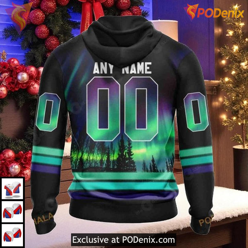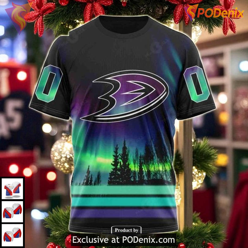 Product Information for Anaheim Ducks Custom Name 3D Hoodie Northern Lights Aurora Borealis Outfit: