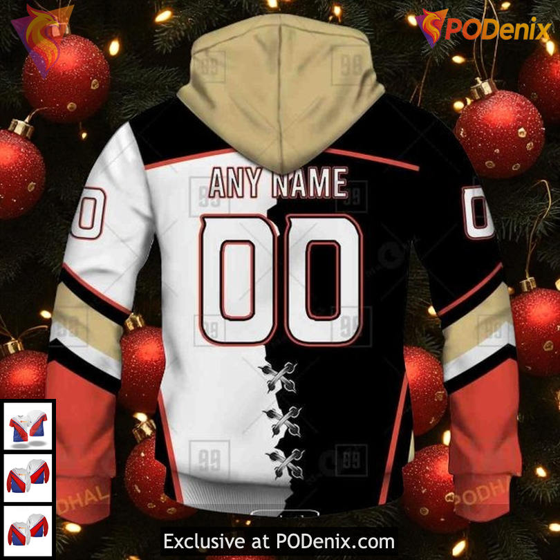 Anaheim Ducks Hoodie For Men Women brings a striking half black half white design with bold NHL vibes, custom name detail and the quote Any Name Any Number that makes it truly yours.