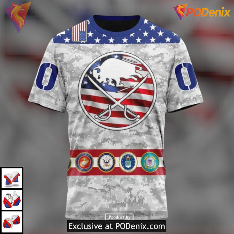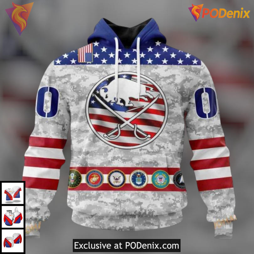 Product Information for Armed Forces Appreciation Tribute NHL Retro Buffalo Sabres Hoodie 3D: