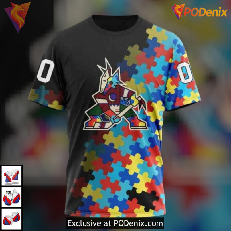 Custom Autism Awareness Arizona Coyotes Apparel – Bold Design for Unity