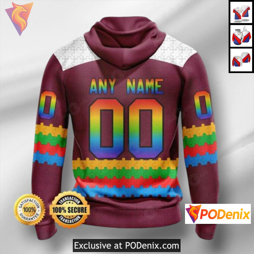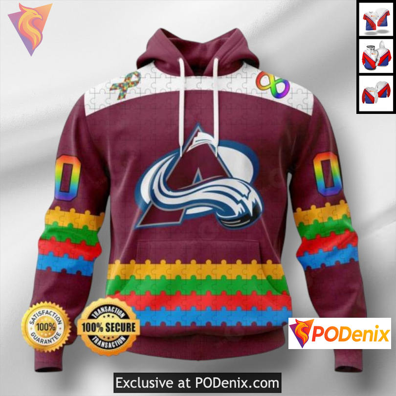 With autism awareness colorado avalanche youth apparel, young fans can express their passion while supporting a noble cause. This hoodie symbolizes a commitment to promoting inclusivity and understanding through the popular culture of hockey, making it a meaningful addition to any wardrobe.
