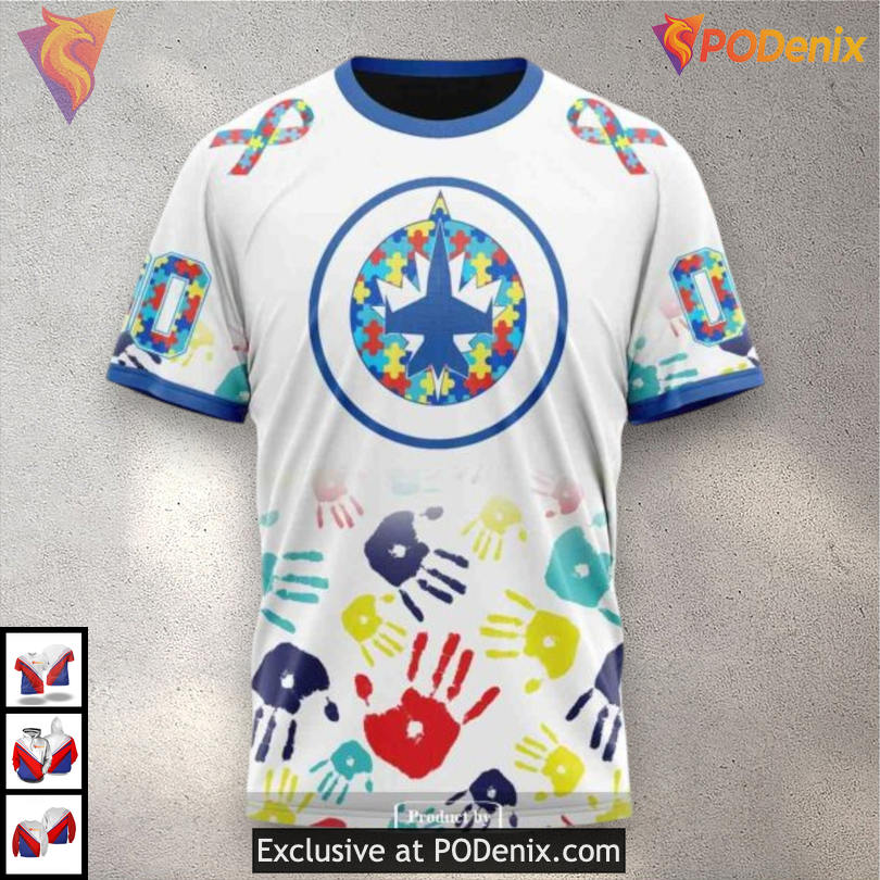 Custom Winnipeg Jets Winter Apparel: Autism Awareness Tribute Style Hoodie