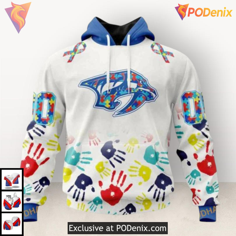 Custom 3D Nashville Predators Hoodie for Autism Awareness and Team Spirit