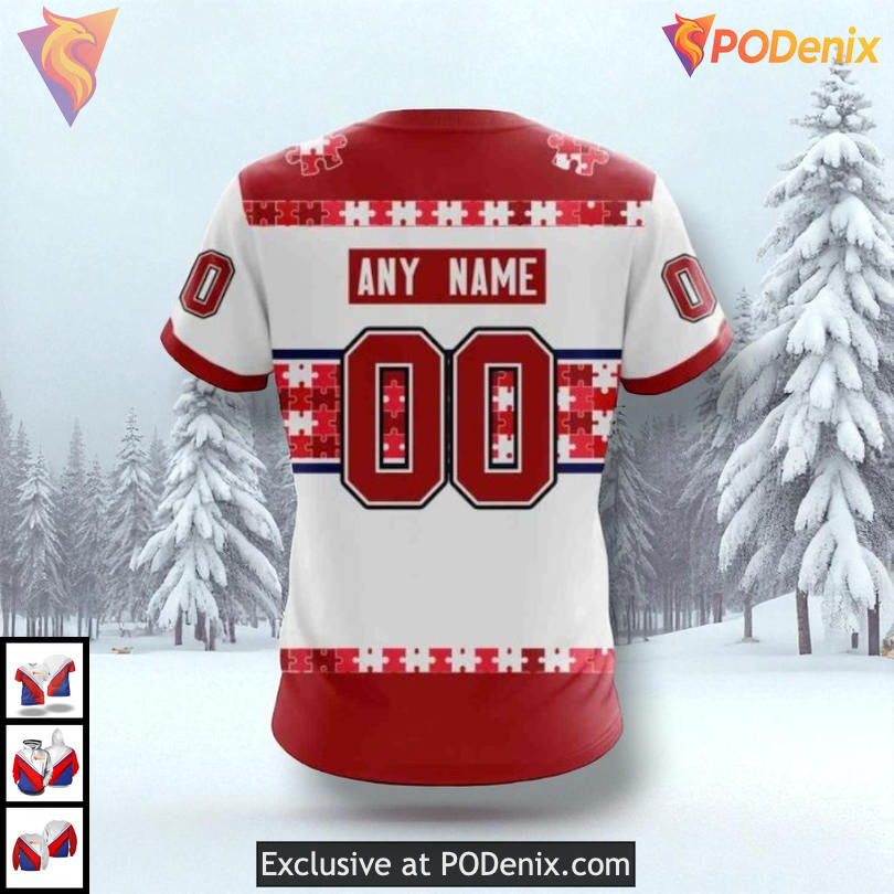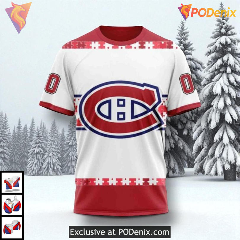 Product Information for Autism Awareness Name Number Edition NHL Montreal Canadiens Christmas Hoodie 3D: