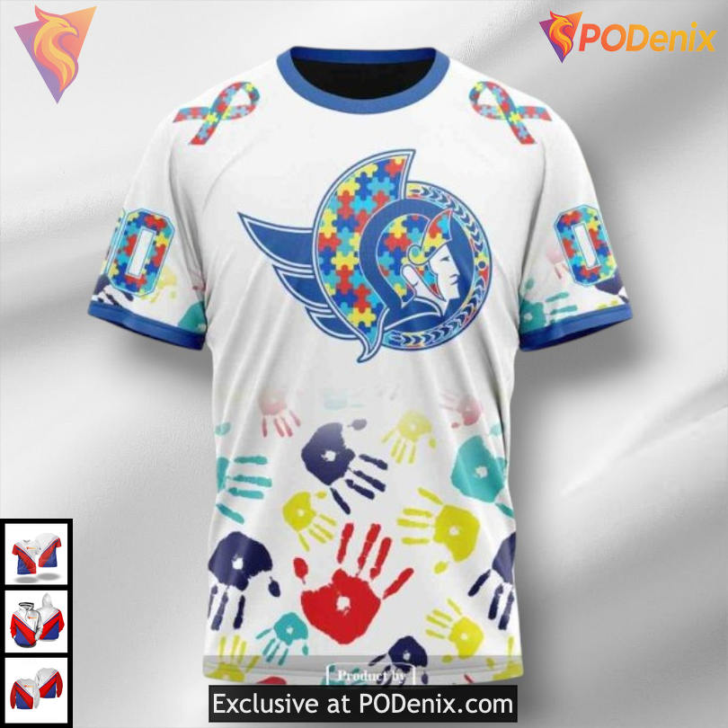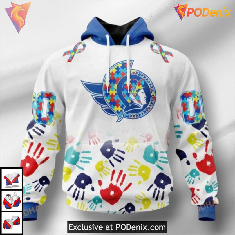 Autism Awareness Ottawa Senators Hoodie with Festive Puzzle Design