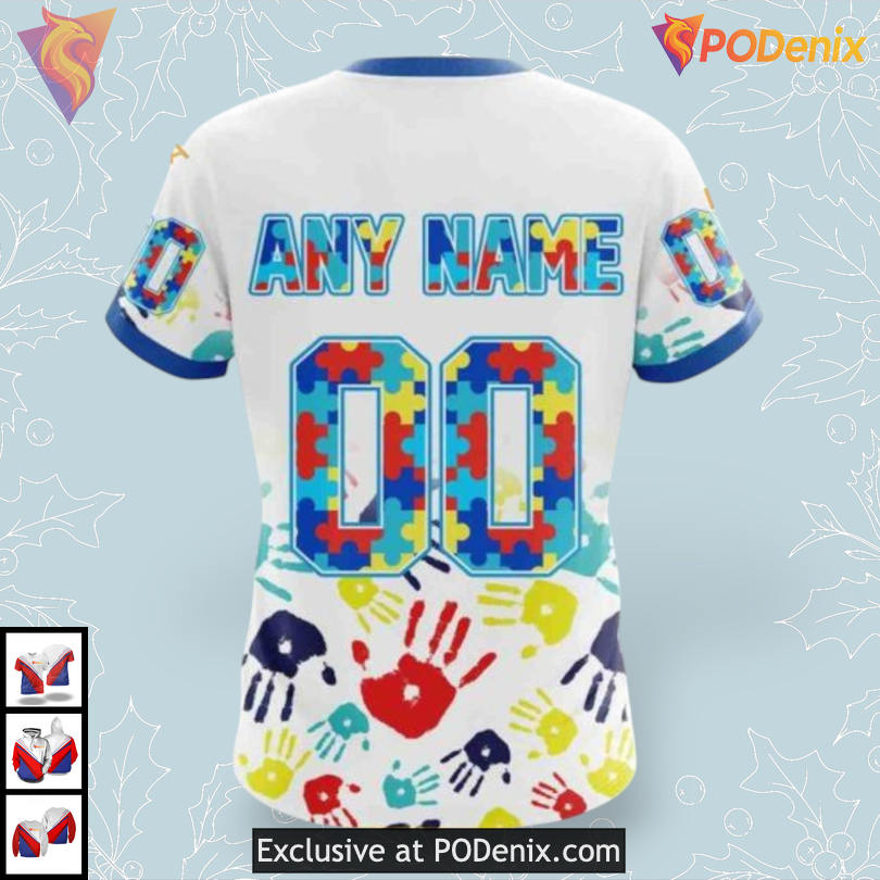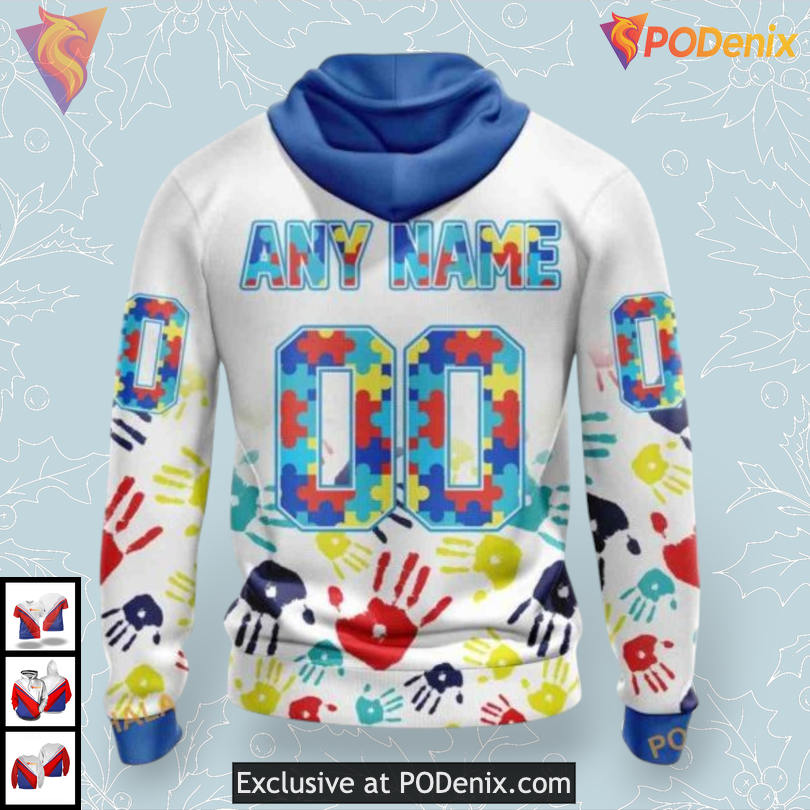 This Ottawa Senators Zip Up Hoodie features a vibrant design that cleverly incorporates puzzle motifs, symbolizing autism awareness. The bold colors reflect the energy of the Ottawa Senators, creating a hoodie that stands out in any fan collection.