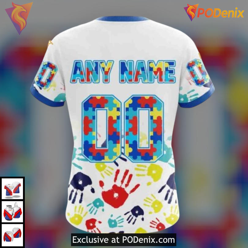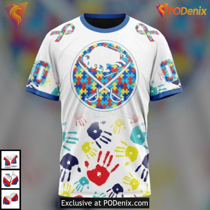 Personalized Buffalo Sabres NHL Apparel with Creative Holiday and Autism Awareness Design