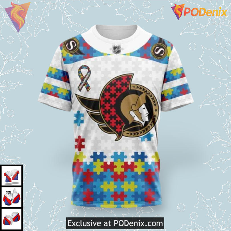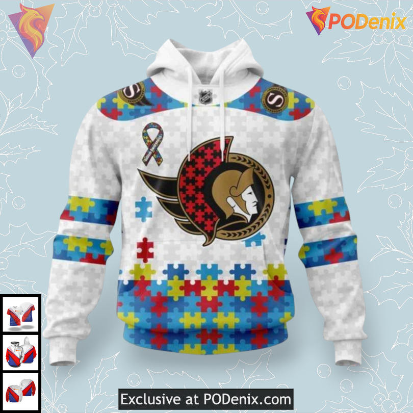 Product Information for Autism Awareness Tribute Edition NHL Ottawa Senators Holiday Hoodie 3D: