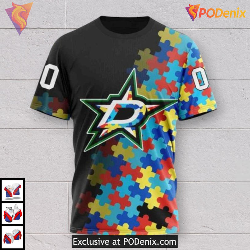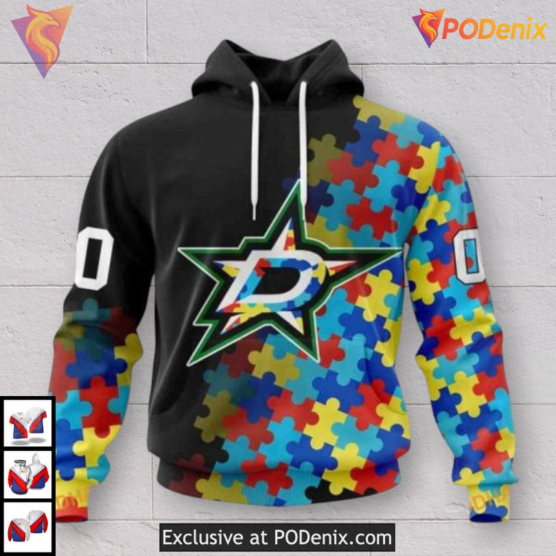 Featuring unique dallas stars autism awareness art, this hoodie embodies the spirit of community and support, reminding fans that together we can make a difference while celebrating our favorite team.