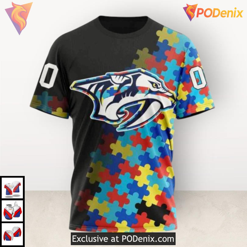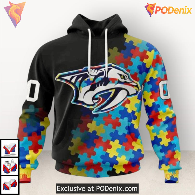Custom Nashville Predators Holiday Apparel Celebrating Black Autism Awareness in Sports