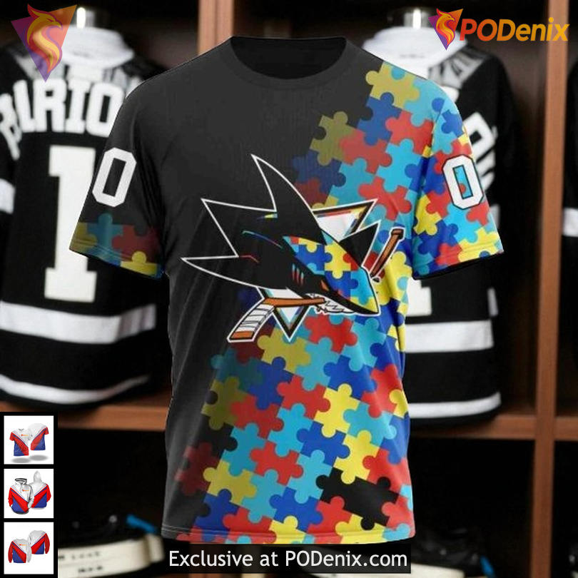 Custom NHL San Jose Sharks Apparel – Black Autism Awareness Edition Hoodie