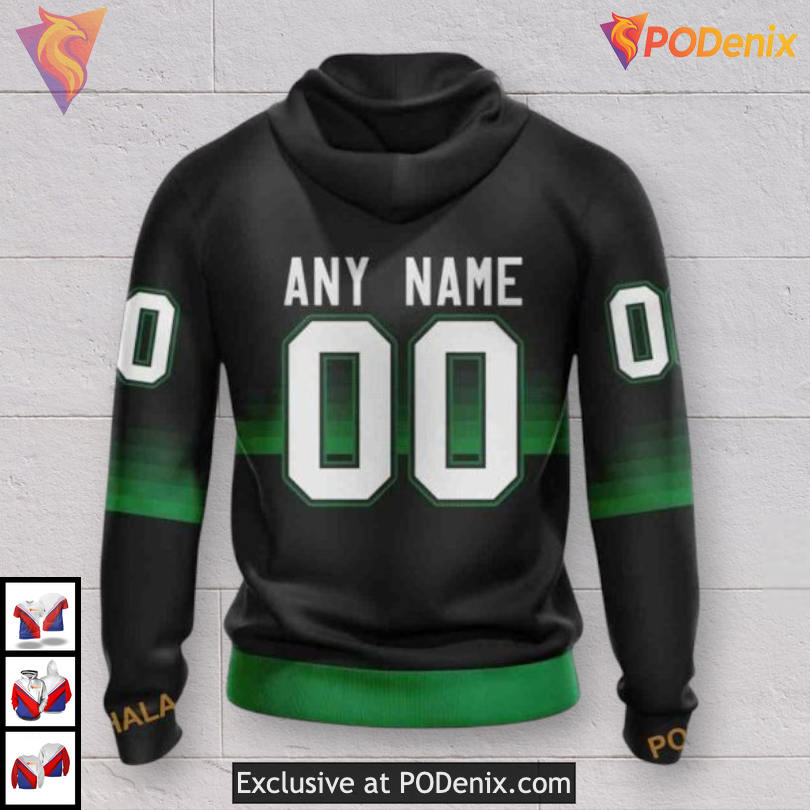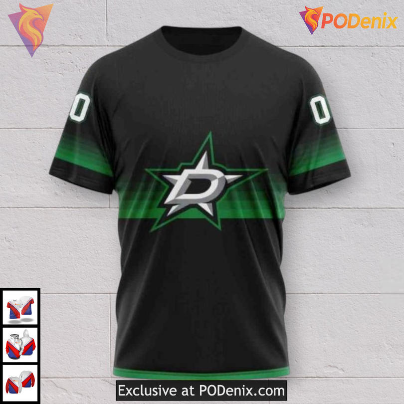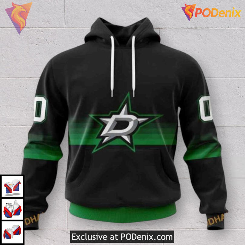 Custom black gradient dallas stars apparel adds a unique touch to your game day look. This hoodie stands out with its eye-catching design, embodying the rivalry and excitement that comes with being part of the Dallas Stars community.