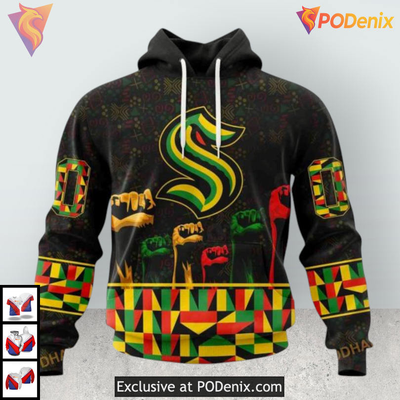 Custom Black History Month Seattle Kraken Hoodie – Celebrate Your Fandom in Style
