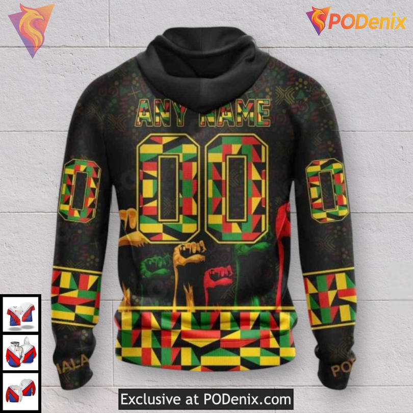 The Dallas Stars Kids Hoodie showcases a vibrant design inspired by the spirit of Black History Month. Featuring striking colors and an energetic vibe, this hoodie embodies the pride and passion of young fans, making it a standout piece for any occasion.
