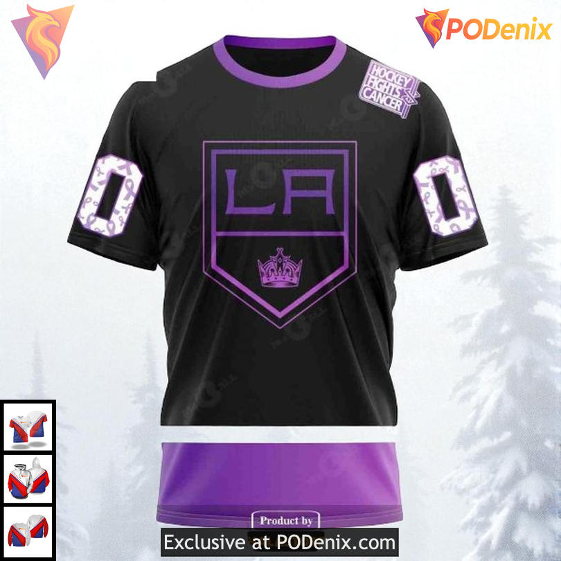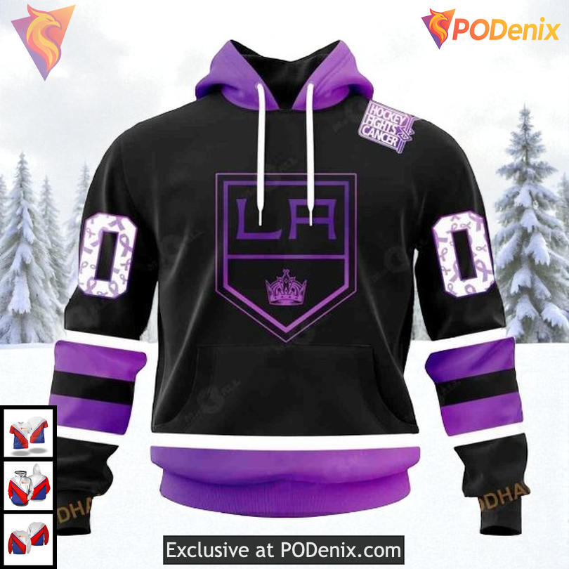 Product Information for Black Hockey Fights Cancer Edition Personalized Los Angeles Kings Hoodie NHL 3D: