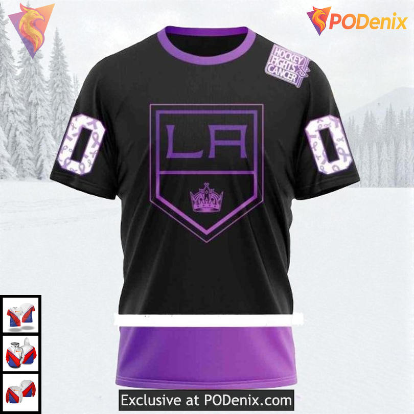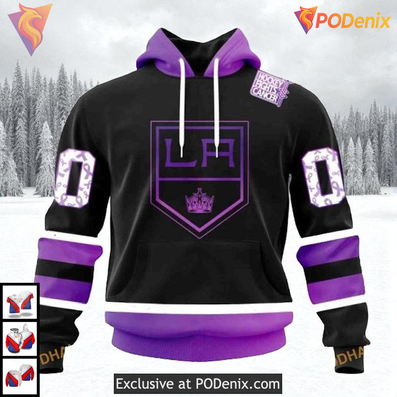 Los Angeles Kings Custom Youth Hoodie – Black Hockey Fights Cancer Design