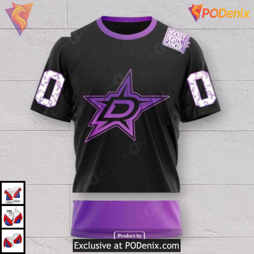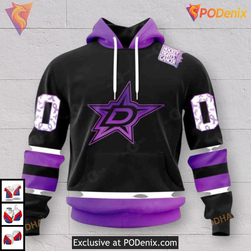 Custom 3D Dallas Stars Womens Apparel – Black Hockey Fights Cancer Tribute Hoodie
