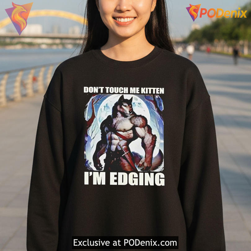 This don’t touch me kitten I’m edging shirt captures the essence of modern meme culture, connecting fans who enjoy humor with a daring twist. Its wolf theme and ironic energy make it popular among furry fans and those who love fearless expression through fashion.