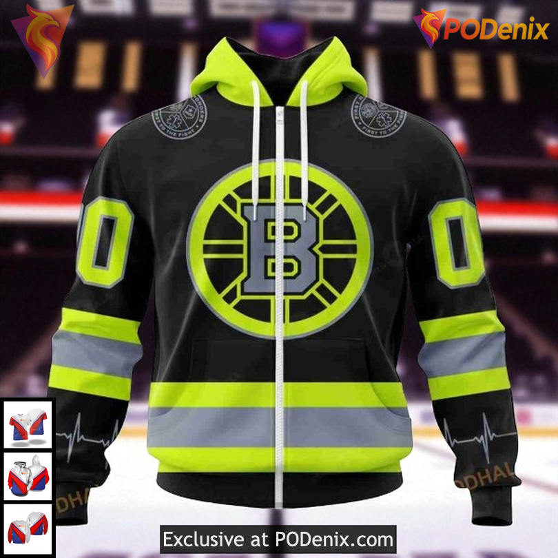 The boston bruins firefighter uniform design reflects the dedication and resilience of both the team and its supporters. This hoodie embodies the spirit of teamwork and passion that defines the Boston sports culture, making it a staple in any fan’s wardrobe.