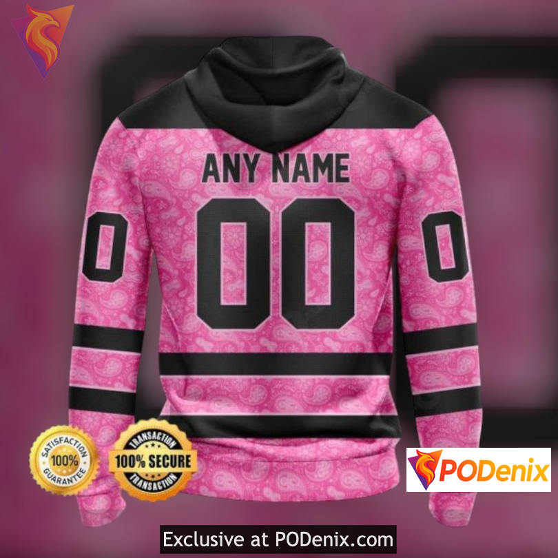 Showcase your support with the vibrant New Jersey Devils Pullover Hoodie, featuring a striking breast cancer ribbon motif. This design embodies a powerful message of awareness, blending team spirit with a cause that unites fans in solidarity and hope.