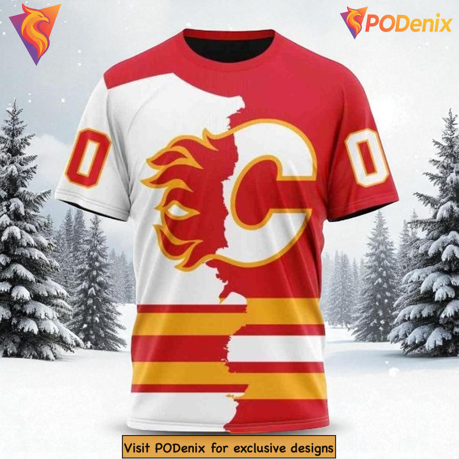 Calgary Flames Hoodie 3D, Custom 2025 Mix Home Away Design For NHL Fans Features: