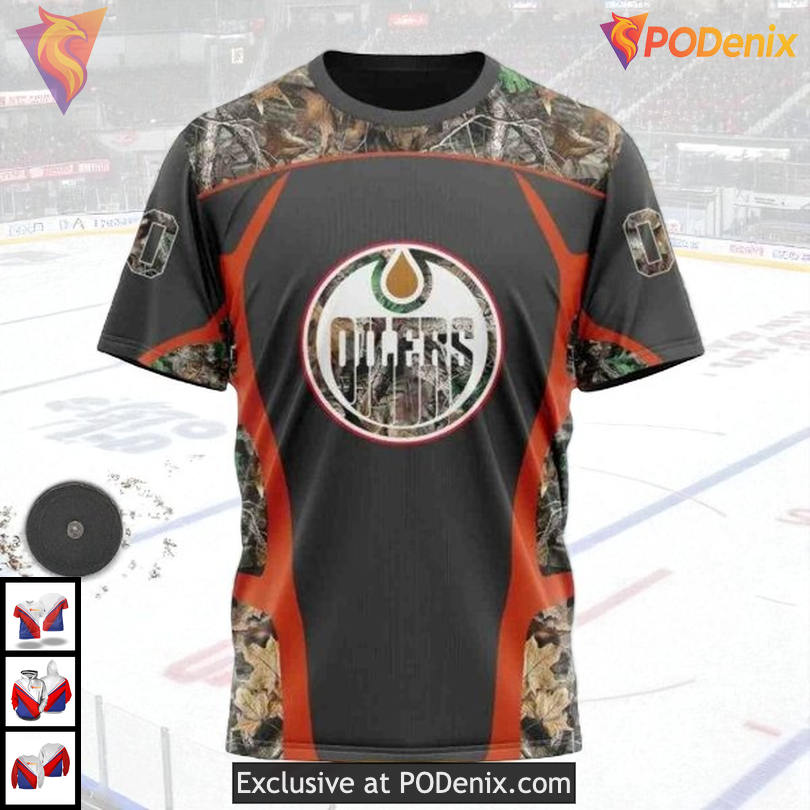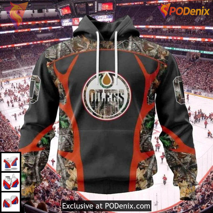 Product Information for Camo Hunting Graphic Style NHL Edmonton Oilers Youth Hoodie 3D: