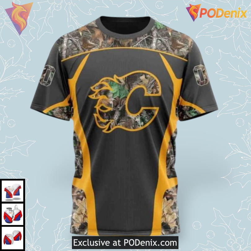 Product Information for Camo Hunting Pattern Calgary Flames Winter Hoodie 3D Custom Edition: