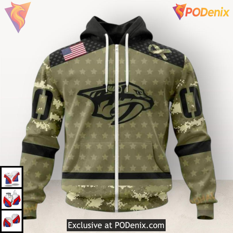 The camo military appreciation predators sweatshirt reflects a deep sense of community and pride among fans, reminding everyone that the spirit of teamwork extends beyond the ice and into the hearts of supporters everywhere.
