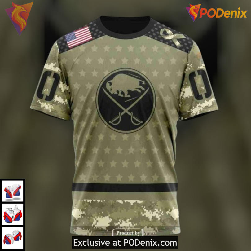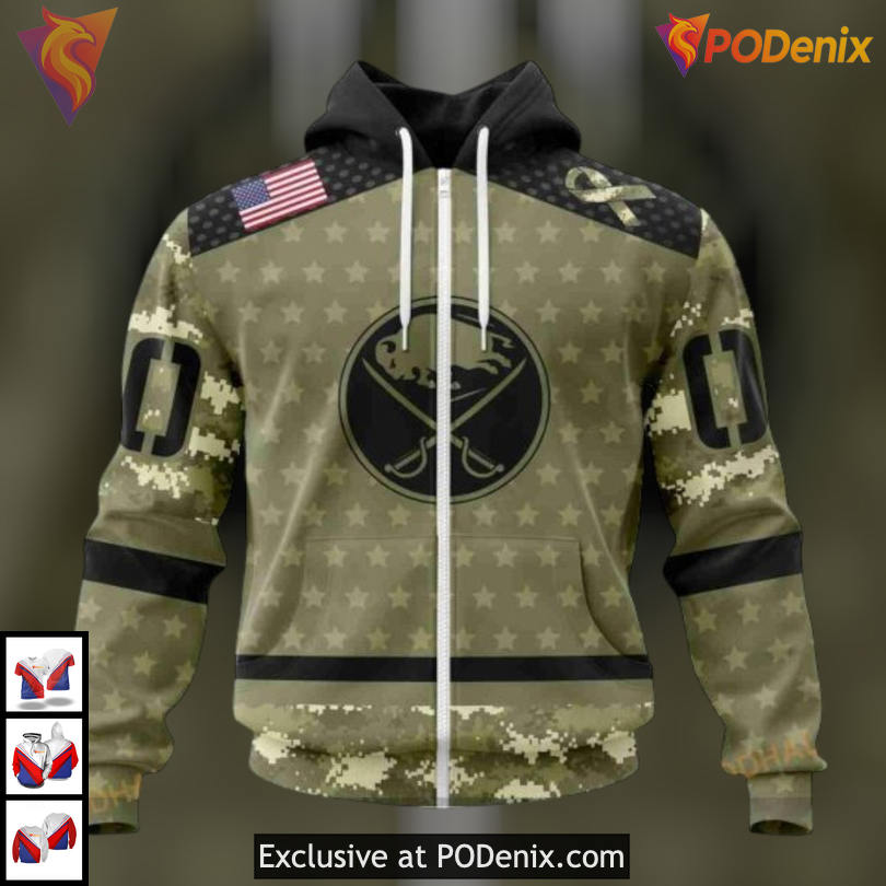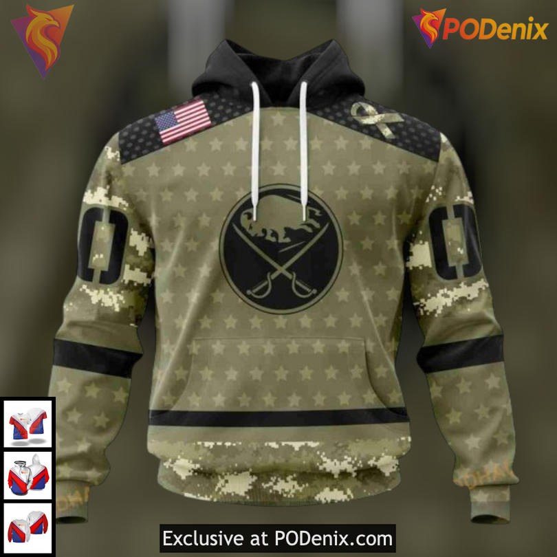 Product Information for Camo Military Appreciation Edition NHL Buffalo Sabres 3D Hoodie Custom: