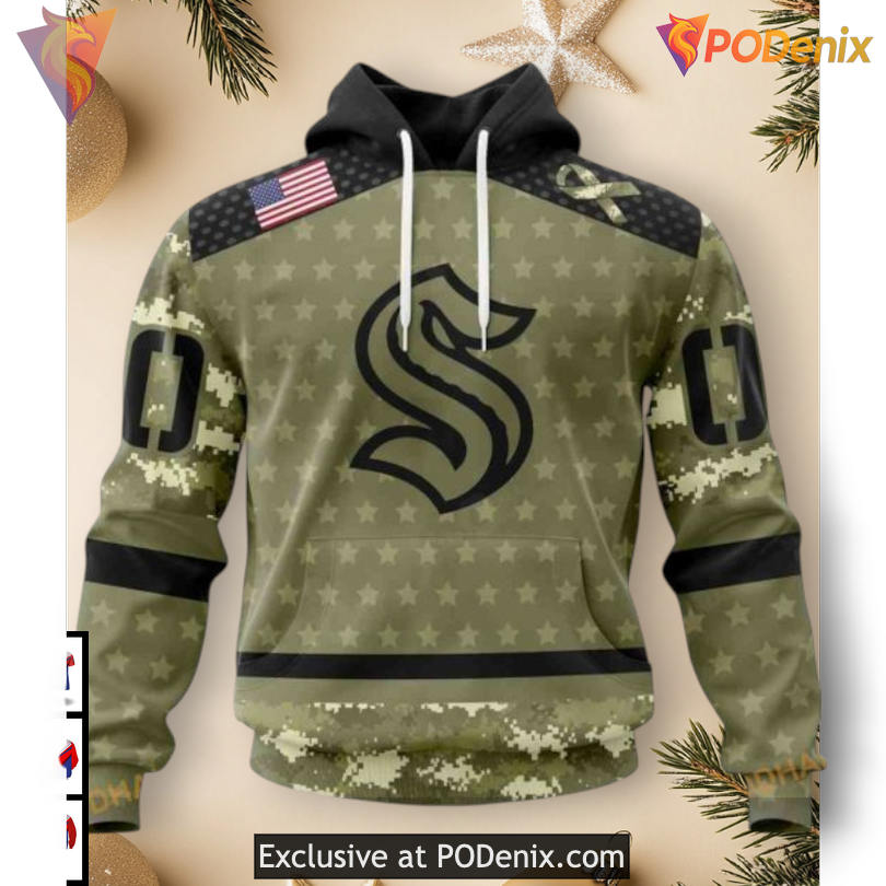 Camo Military Appreciation Graphic Style Seattle Kraken Camo Military Hoodie