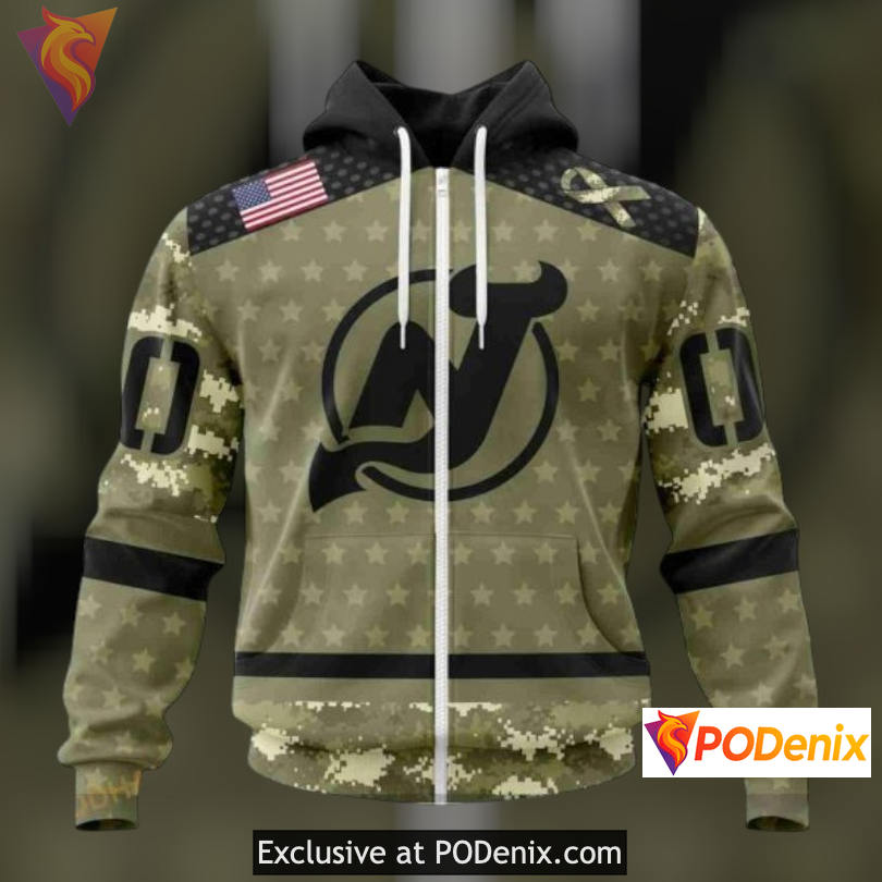Camo Military Appreciation Hoodie for Men – Unique New Jersey Devils Design