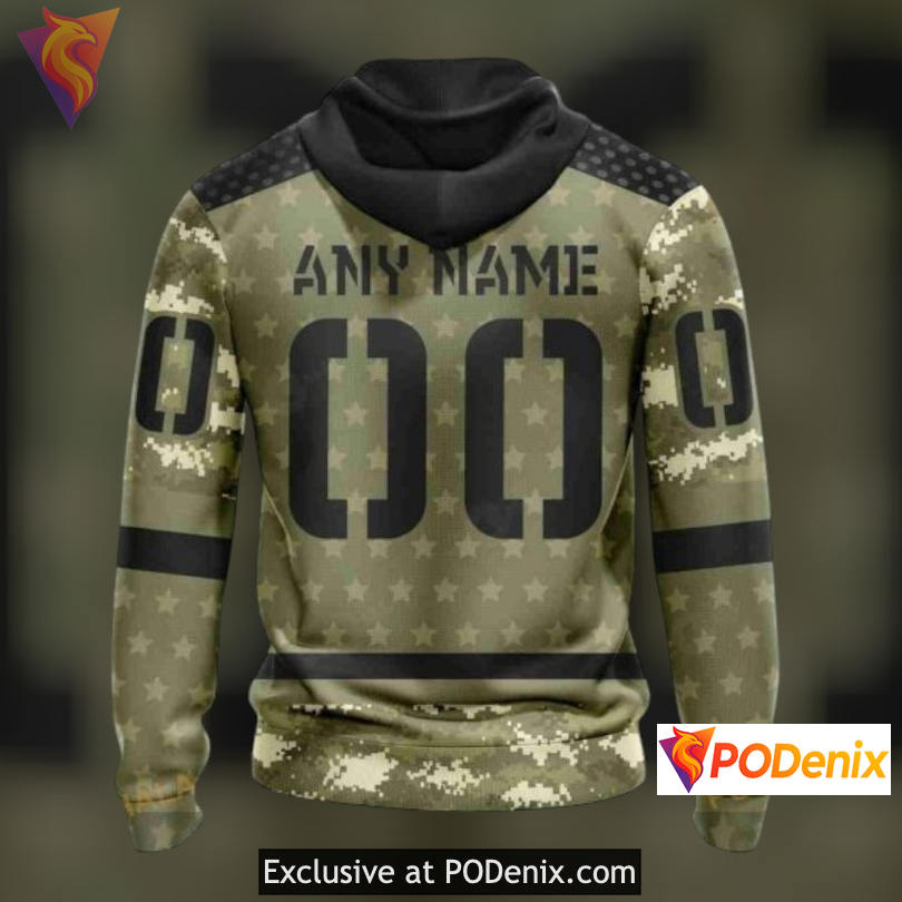 This hoodie showcases unique designs for military appreciation month, encouraging fans to participate in events that celebrate both their love for the game and their respect for those who serve in the armed forces.