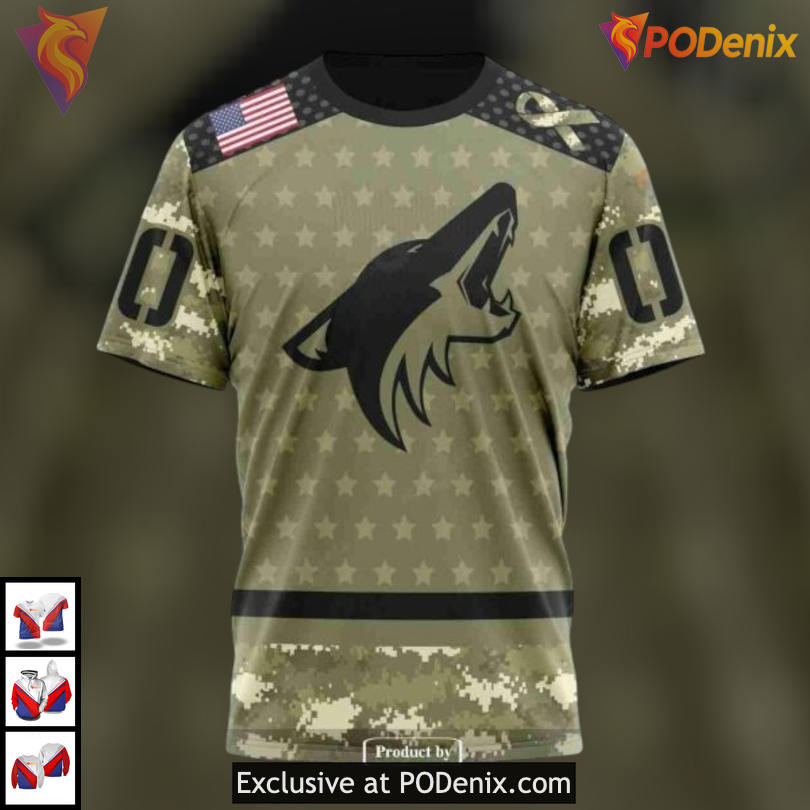 Camo Arizona Coyotes Tribute Apparel Honoring Military Appreciation in Sports