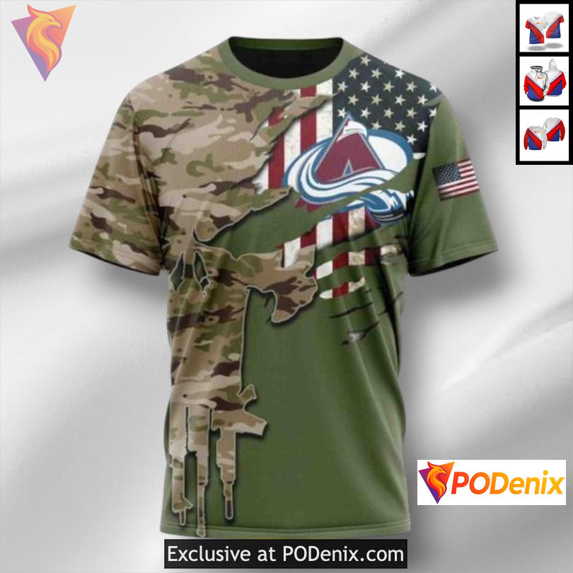 Custom 3D Colorado Avalanche Fan Apparel with Unique Camo Skull Design