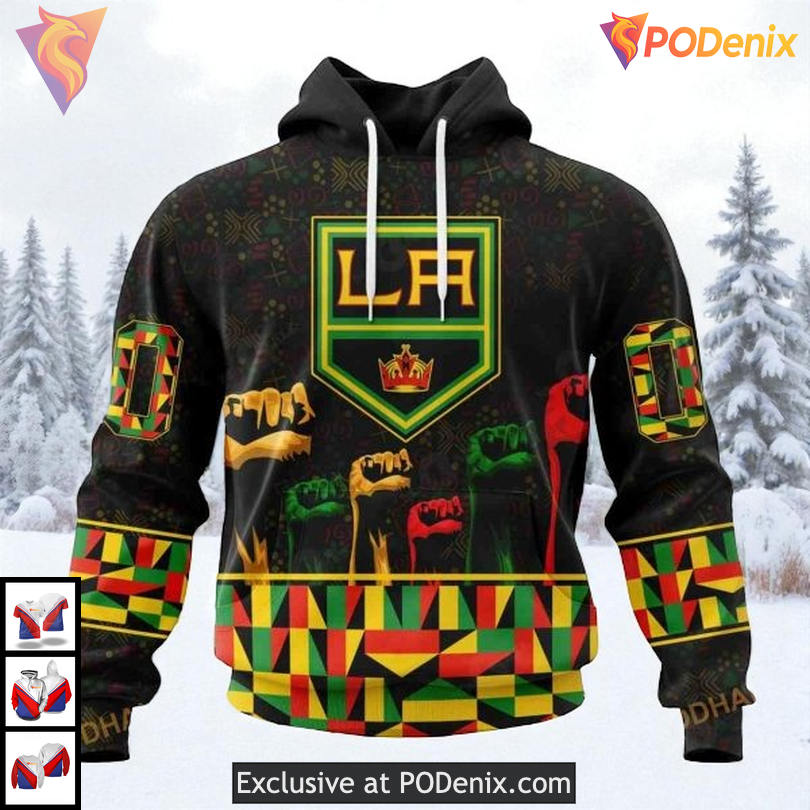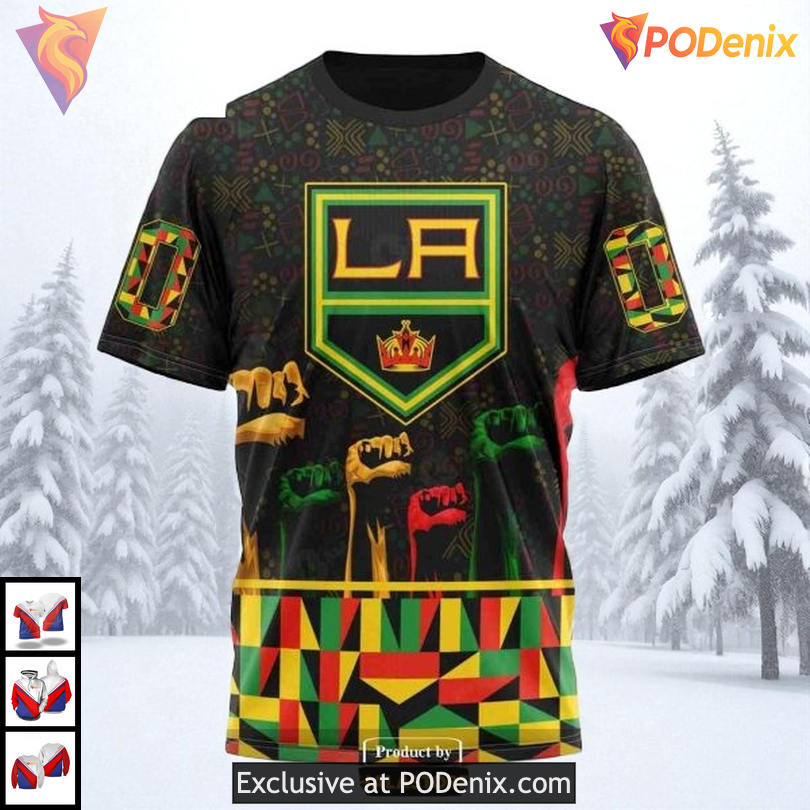 Product Information for Celebrate Black History Month Tribute Custom Name Los Angeles Kings Hoodie NHL 3D: