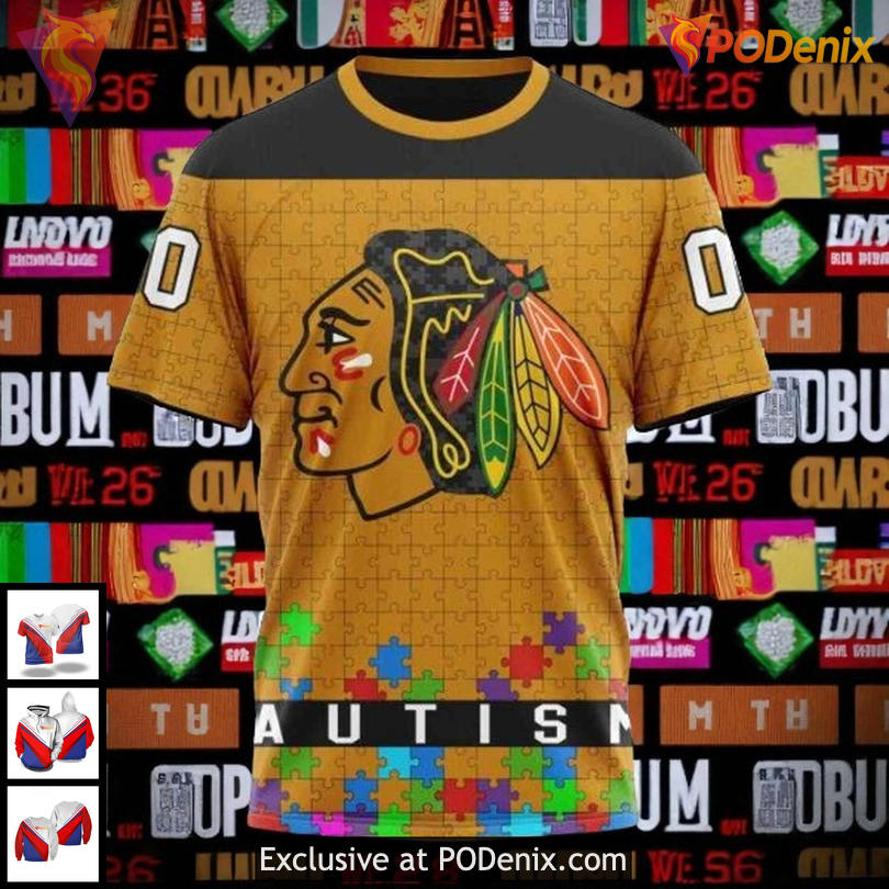 Exclusive Chicago Blackhawks Autism Puzzle Hoodie – Limited Edition Design