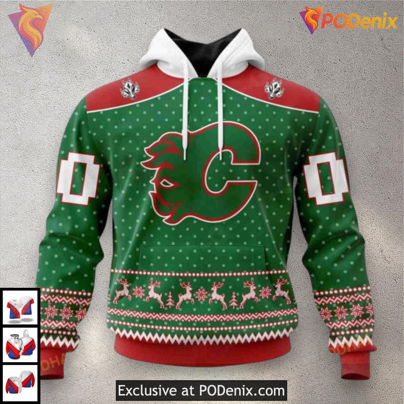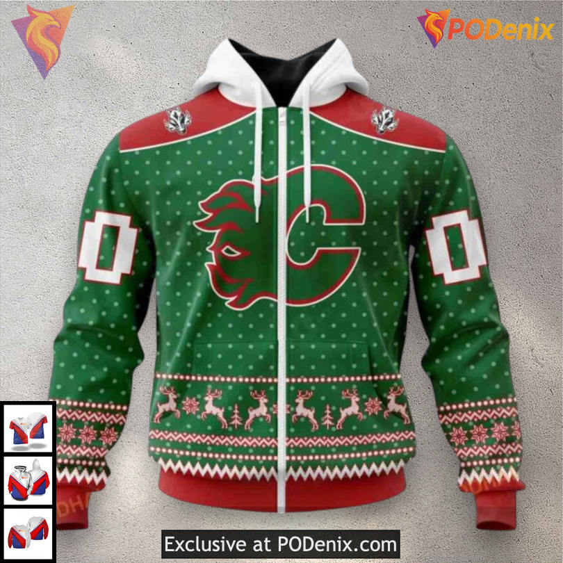 Product Information for Christmas Apparel Collection Calgary Flames Graphic Hoodie 3D Holiday Style:
