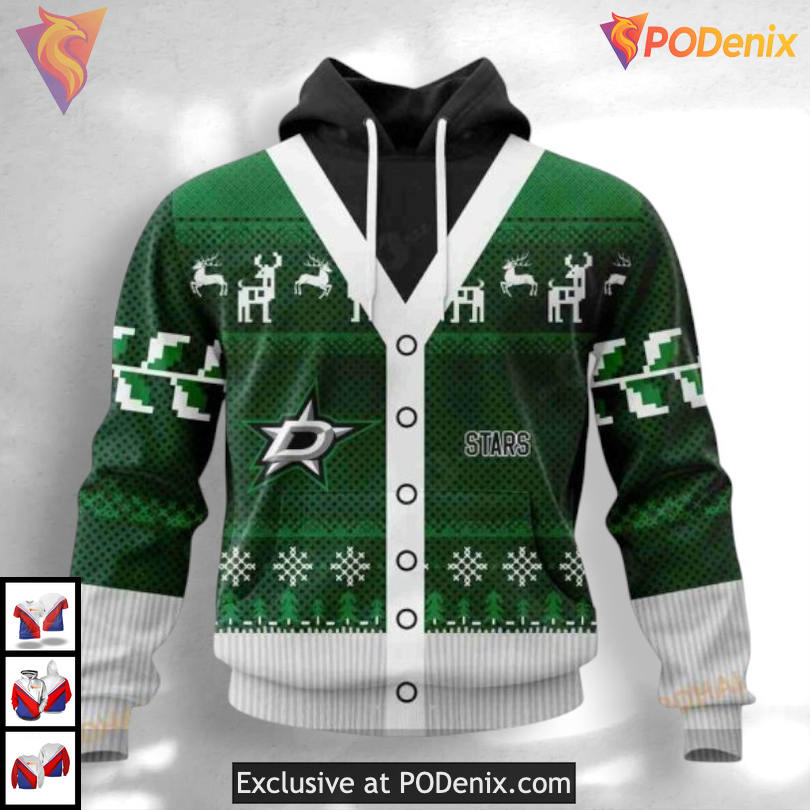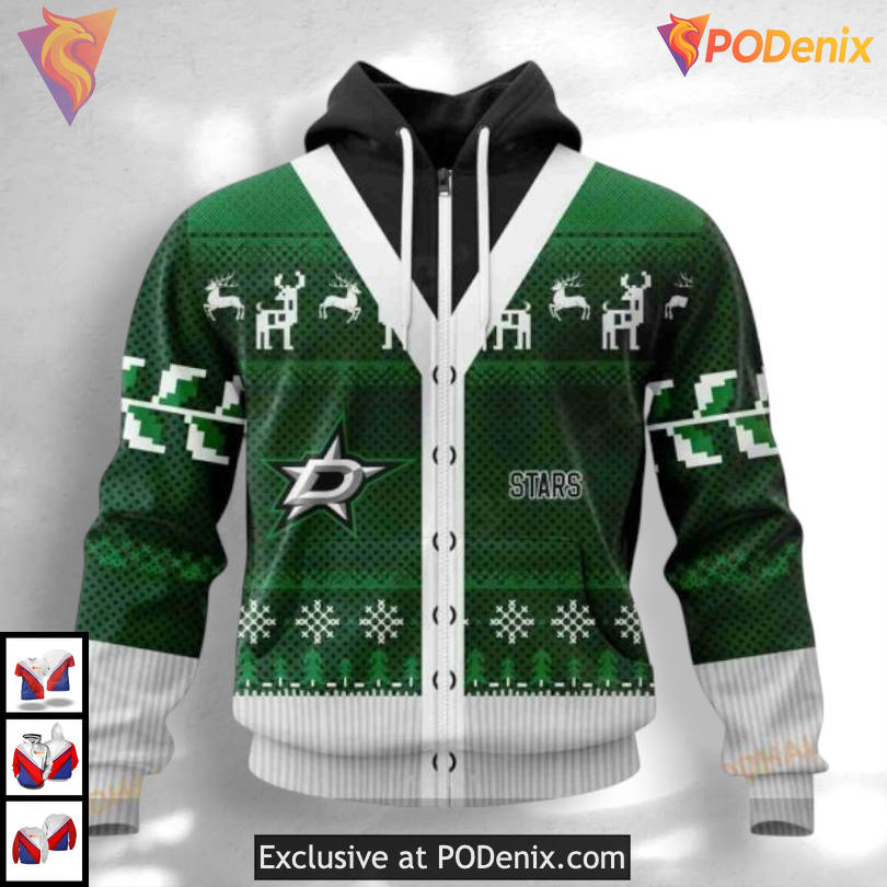 Custom 3D dallas stars holiday apparel allows fans to express their team spirit in a fresh, seasonal way. Whether at the rink or a holiday gathering, this apparel brings a unique touch to any outfit, showcasing loyalty and festive flair.