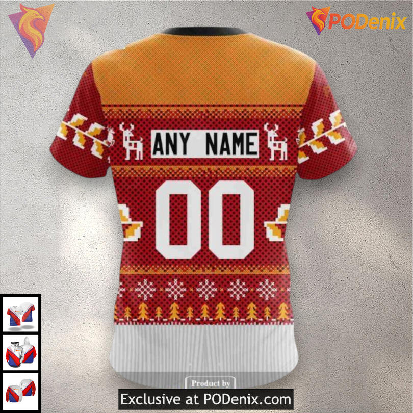 With custom calgary flames holiday apparel, you can express your dedication to the team while embracing the festive atmosphere. This unique piece not only reflects your love for the Flames but also adds a touch of seasonal cheer to your wardrobe.